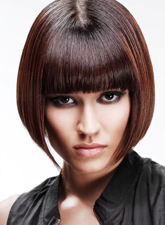 Боб средней длины с густой челкой