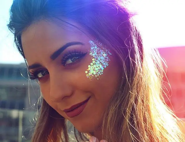 Макияж с блестками годится не только для вечеринки, но и для повседневной жизни. Сияющие частицы можно использовать над и под глазами, украсить ими стрелки, губы, скулы или брови. Уместнее всего такой мейкап смотрится на тематических и вечерних мероприятиях без строгого дресс-кода. Также благодаря разному виду блесток можно выбрать нейтральные по цвету и в небольшом количестве носить их и в офис, если регламент компании это позволяет.