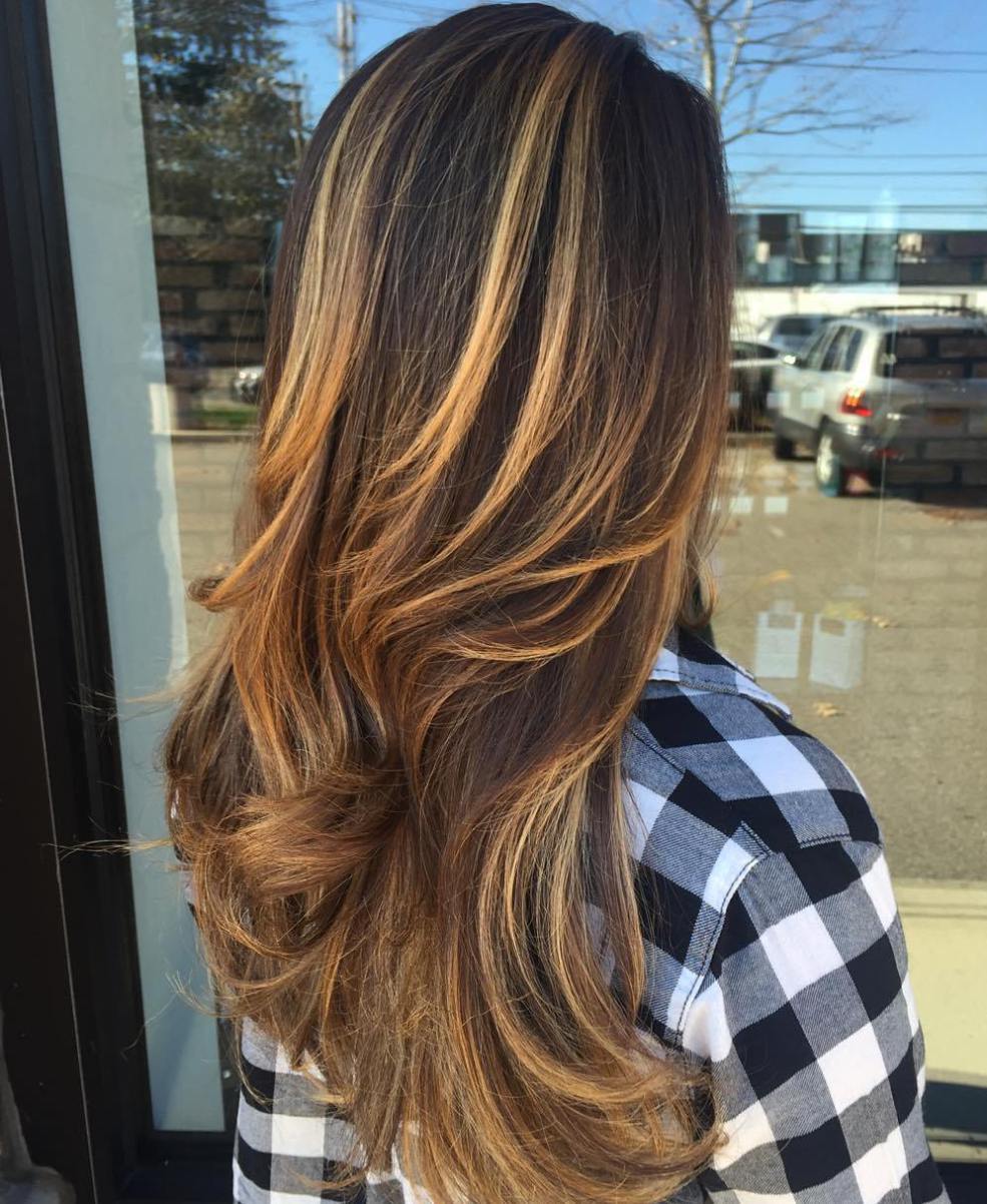 Осветление шоколадных волос бразильским мелированием