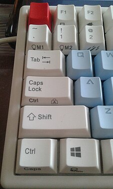 - Стандартное положение клавиши ⇪ Caps Lock — во втором ряду клавиатуры около буквы «A». Для такой клавиши это слишком доступное место: с одной стороны, её легко случайно нажать; с другой — на её месте можно было установить более часто используемую клавишу.