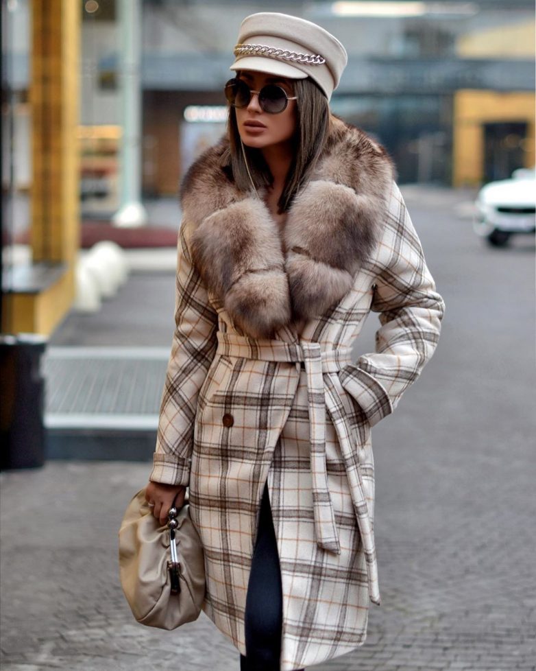 Голубым может быть длинный пуховик, пальто, шуба. В тренде пальто в клетку с меховым воротником и манжетами. Если выбрать правильный цвет, то пальто в клетку не будет ассоциироваться с винтажной находкой. Крой у современного пальто свободный, а ретро модели, приталенные с сильным облеганием.