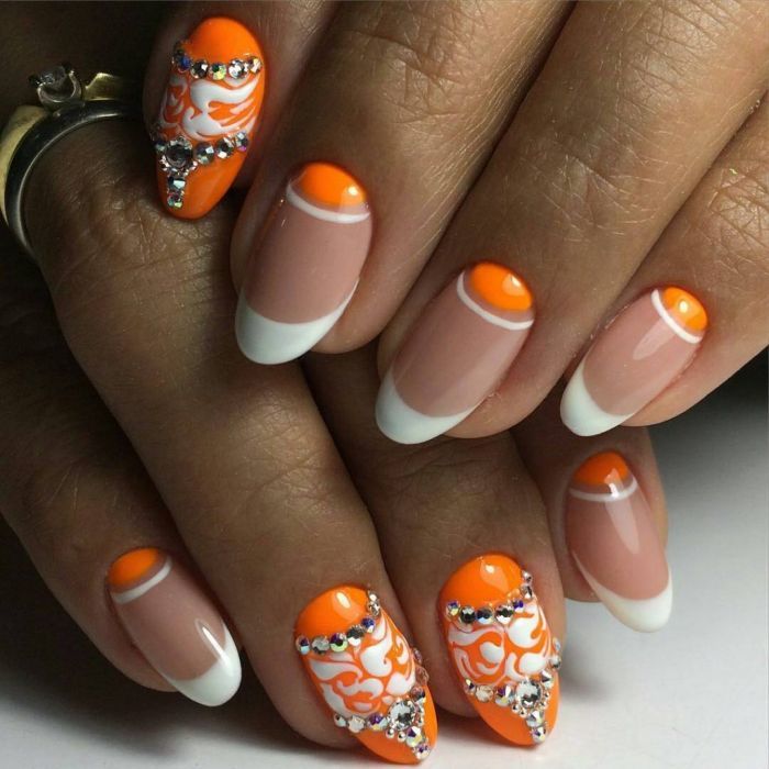 Нейл-арт таких ногтей может быть самым разнообразным. Здесь можно все: стразы, пайетки, глиттер. Рисунок – на вкус и цвет: вензеля, буквы, надписи. Такие оттенки позволяют делать френч в любой цветовой гамме, лунки разных оттенков.