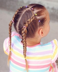 Если волосы вашей дочери слишком короткие для вышеуказанной прически и вам нужно что-то на неделю или две, вы можете уложить ее волосы в эти короткие косы.