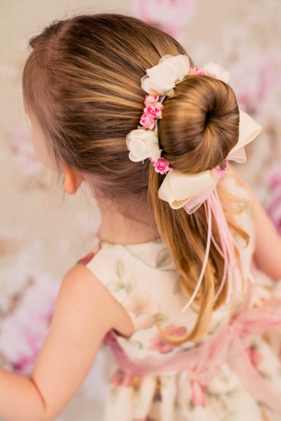 Другое название прически для девочек – баббета. Для создания пучка на длинные волосы потребуется бублик, помогающий сделать объем больше. Такая прическа ребенку поможет создать элегантный, величественный образ. Для создания праздничного образа, можно добавить банты, короны и другие украшения в пучок, выполненный на длинные волосы.