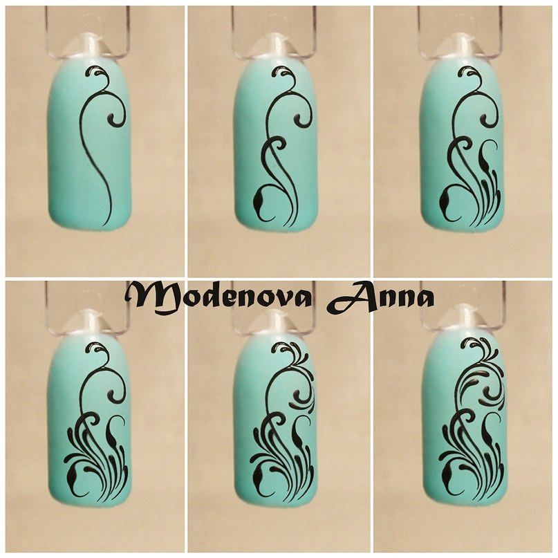 Можно сделать первую попытку, следуя пошаговому алгоритму создания простых вензелей на ногтях: