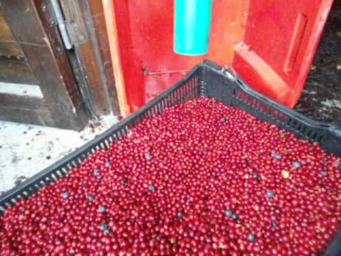 Затем вертолеты перевозят собранные ягоды в грузовики. Разделитель отражающей доски используется, чтобы отличить свежие ягоды от тех, которые просрочены. Самые твердые и свежие ягоды подпрыгивают лучше, чем старые или поврежденные плоды.