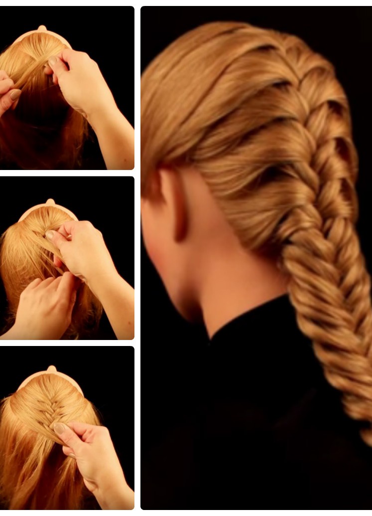 Наиболее популярной прической среди современных красавиц считается прическа «Рыбий хвост». Эту прическу можно сделать всего лишь за десять минут. У лба нужно сделать пробор и перенести пряди набок с двух сторон. Правую прядь нужно переместить поверх левой. Затем пряди, перенесенные набок, нужно снова переместить на правую сторону. Так следует повторять до тех пор, пока не получится утолщенная коса.