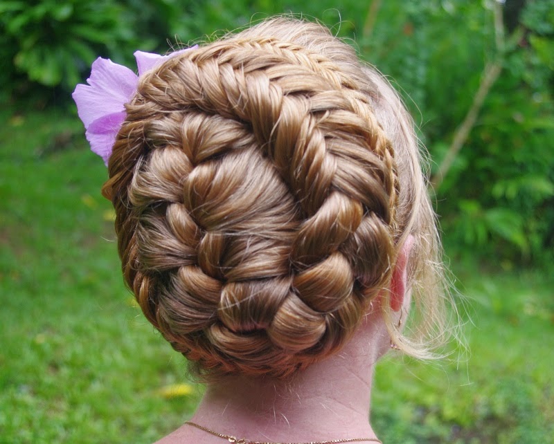 - Если еще остались свободные волосы, заплетите их обычным способом и уложите в виде цветка.