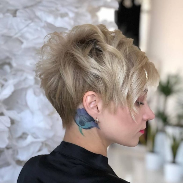 Такая стрижка дополнит косую или рваную челку. Несмотря на легкую небрежность, общий внешний вид прически освежает образ.