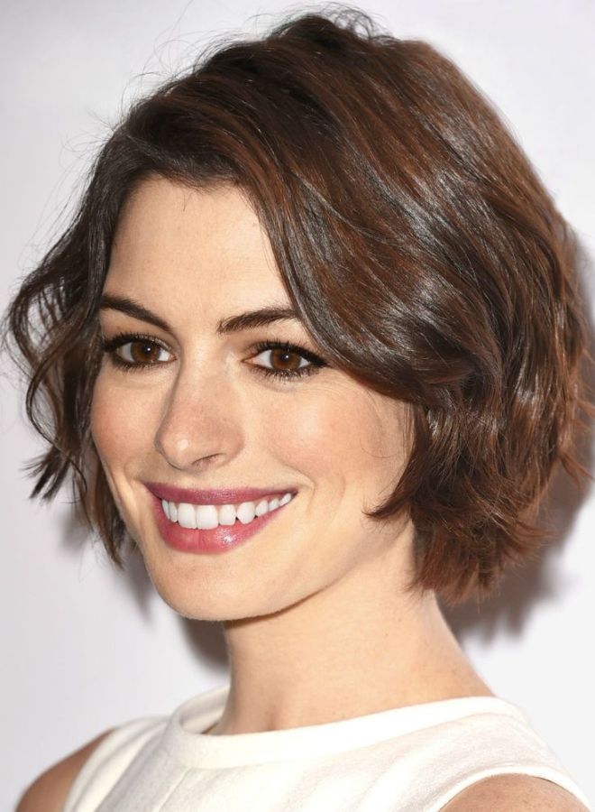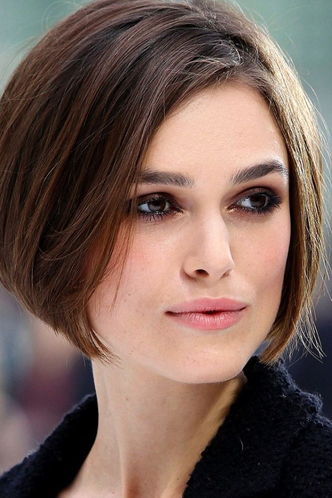 Стрижка «французский боб» длиной до подбородка и овальная форма лица — идеальное сочетание! Они подчеркивают черты лица и очень просты в укладке. Используйте круглую щетку и фен, чтобы завить кончики волос внутрь. Капля мусса для укладки придаст вашим волосам объем и текстуру.