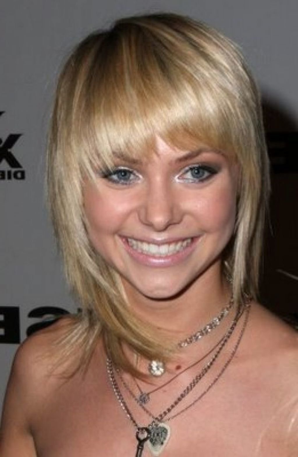 Стрижка лесенка на средние волосы с челкой смотрится молодо и романтично.Дополнительная деталь делает линии и переходы более мягкими и плавными. В зависимости от желаемого результата и необходимости коррекции лица челке придают разную форму: