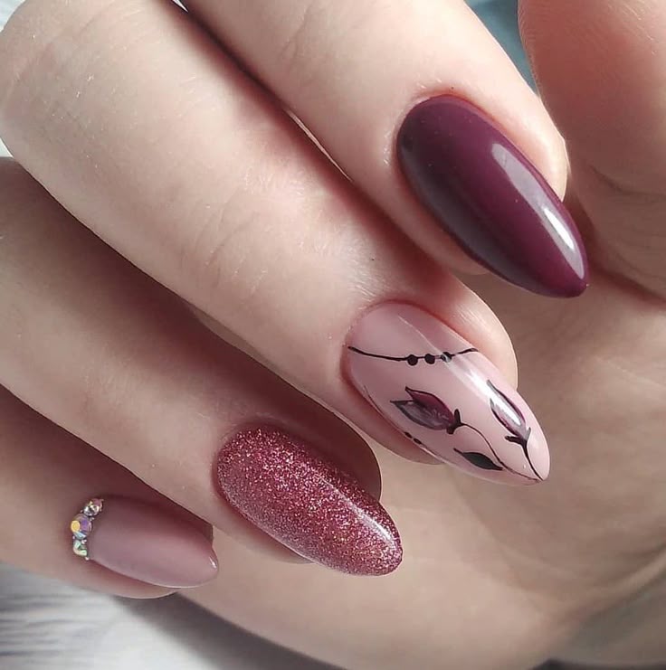 Винно-красные ногти — отличный вариант, например, вместо ярко-красного или пастельно-розового.