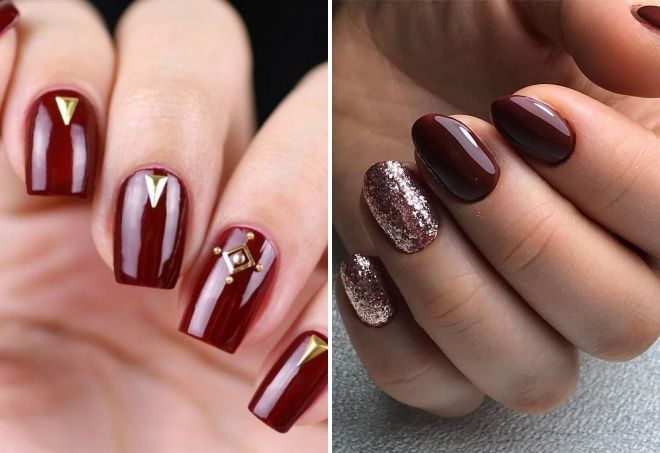 Если вы не любитель выпить бокал вина, вместо этого накрасьте ногти блестящим насыщенным цветом. Кроме того, добавьте сверху детали из золотой фольги для максимальной элегантности.