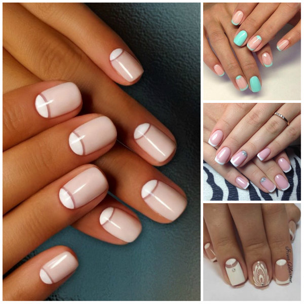 Для такого маникюра отлично подходит белый, чёрный, нюдовый, да и в общем все цвета. Тут также можно добавить и втирку и блёстки, а их можно использовать, как способ окраски лунки и френча.