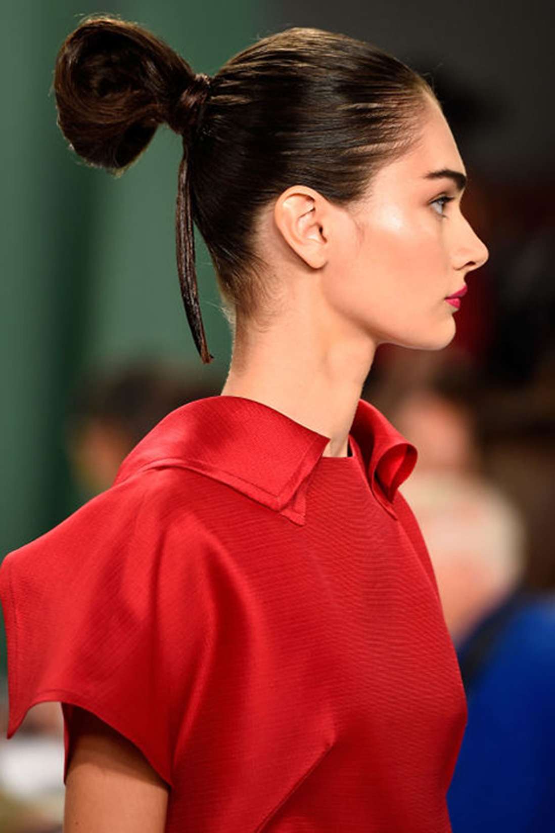 Чтобы добиться этого образа: «Переверните голову вверх дном и расчешите все до верхней точки головы. Держите руку неподвижно и соберите волосы в руку. Главное, чтобы все было гладко и гладко от лица. Плотно, но удобно закрепите его эластичной резинкой для волос. Возьмите еще одну обтянутую лентой и на полдюйма выше другой резинки закрепите вторую ленту», — сказала знаменитый парикмахер и владелица салона Келли Карденас.