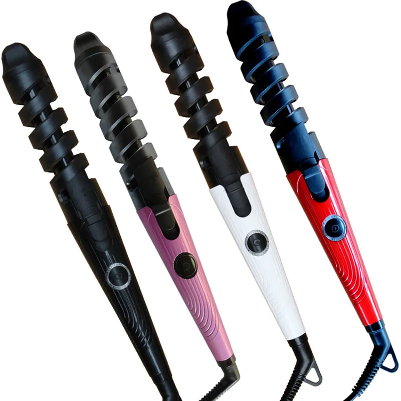 Щипцы для завивки позволяют создавать спиральные локоны и элегантные локоны, закручивая прядь волос вокруг нагретой штанги и удерживая ее с помощью предохранительного зажима.
