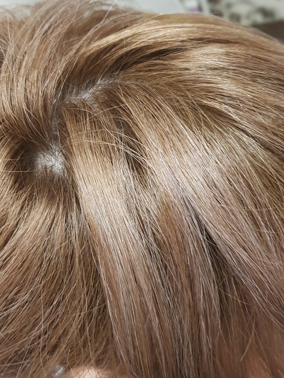 Правда, должна предупредить: где волосы тонкие и переженные утюжком, получился коричневатый оттенок, но с последующим мытьём ушёл и сровнялся, я влюбилась в этот оттенок.