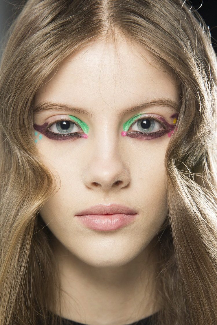 Конечно, это самый «инстаграммабл» тренд сезона: брызги краски на лице выглядят куда необычнее ярких губ или смоки-айз. Микс из нескольких оттенков наиболее выигрышно смотрится на веках и бровях – тем более, что разноцветные пятна не потребуют тщательной растушевки. Используй 2-3 пастельных тона и хотя бы один яркий – синий, оранжевый, красный или зеленый.