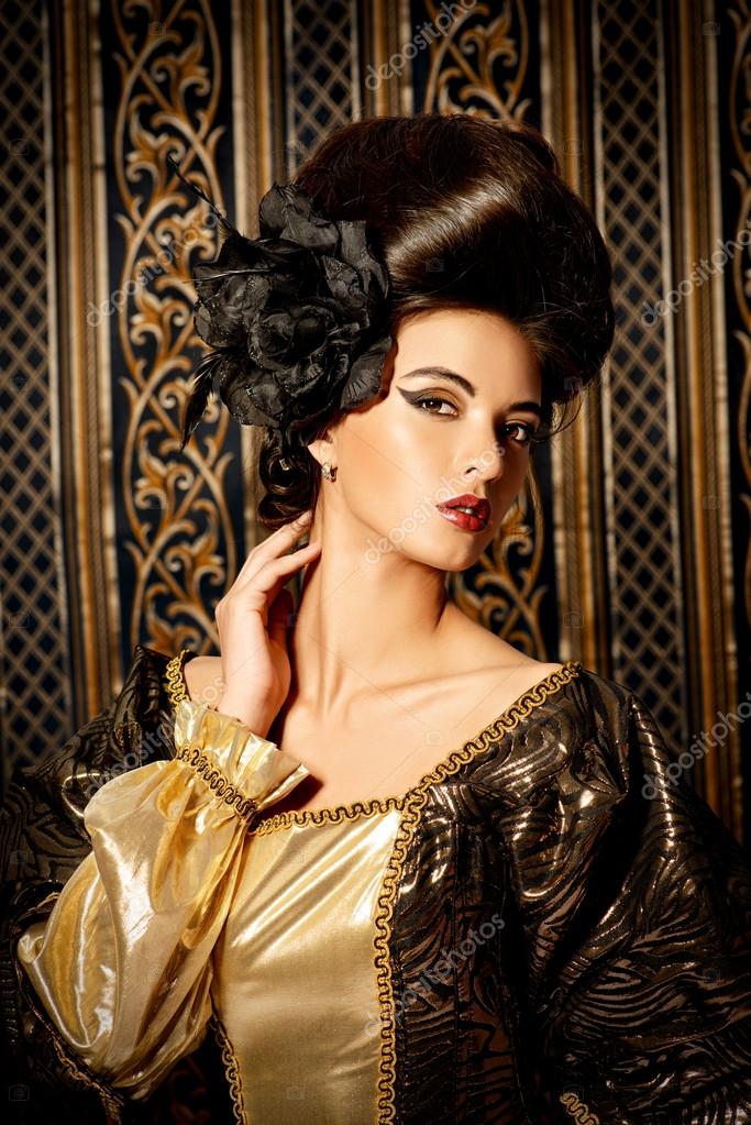 еще было заметно отдаленное испанское влияние, когда прически украшали драгоценностями.