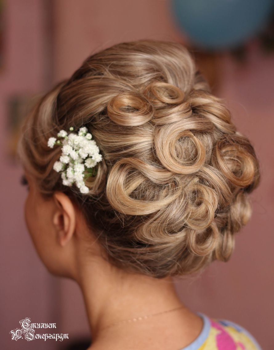 Высокие прически всегда были актуальны, для торжеств в особенности. В основном, это красиво прибранные в пучок волосы. А яркий аксессуар способен дополнить укладку и сделать образ завершенным.