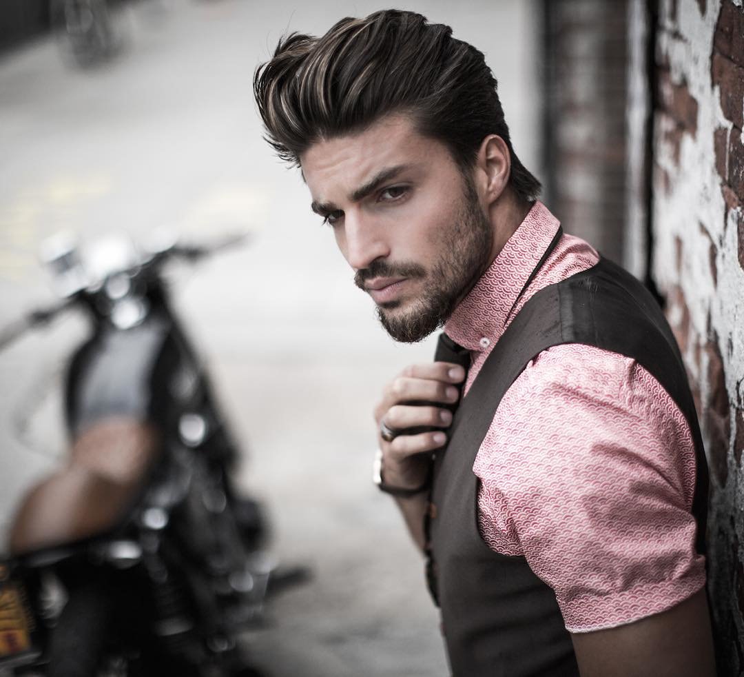 Помпадур отличают пышные волосы на затылке, уложенные назад, которые визуально удлиняют лицо. Такая прическа отлично смотрится с классикой, бизнес-кэжуал и романтическим стилем.