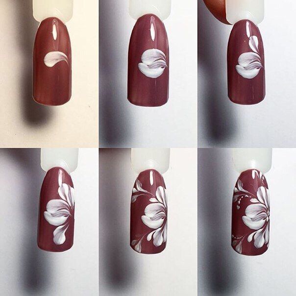 Пошаговая инструкция цветочного рисунка на ногтях: