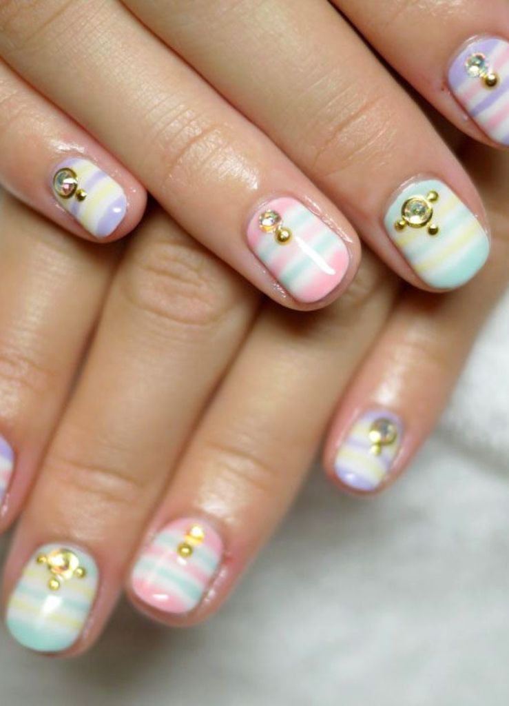 Эти пастельные, радужные ногти с эффектом омбре — игривый образ лета.Вы можете носить их на пляже или на фестивале как невероятно стильный и эффектный аксессуар.