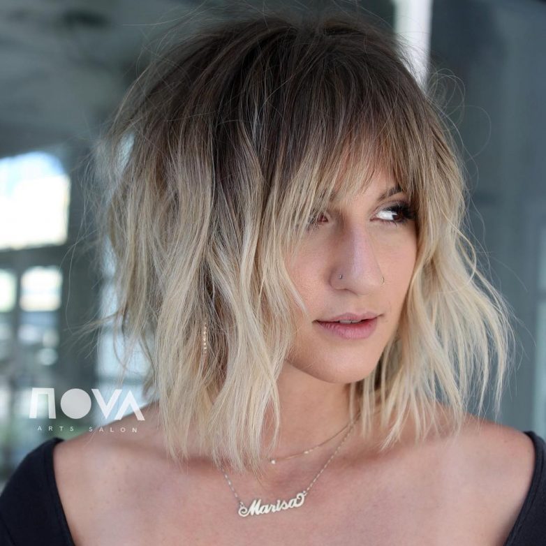 Если образ дополняется челкой, то она тоже может быть разного вида: прямой, косой, а может быть рваной, как и прическа. Стрижки с рваной челкой, фото которых представлены ниже, в 2017 году находятся на пике популярности.