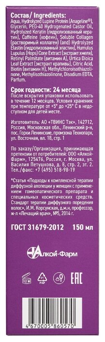 Активизирует рост волос на 93% *; улучшает питание волосяных фолликулов; увеличивает продолжительность жизни волосяных фолликулов;