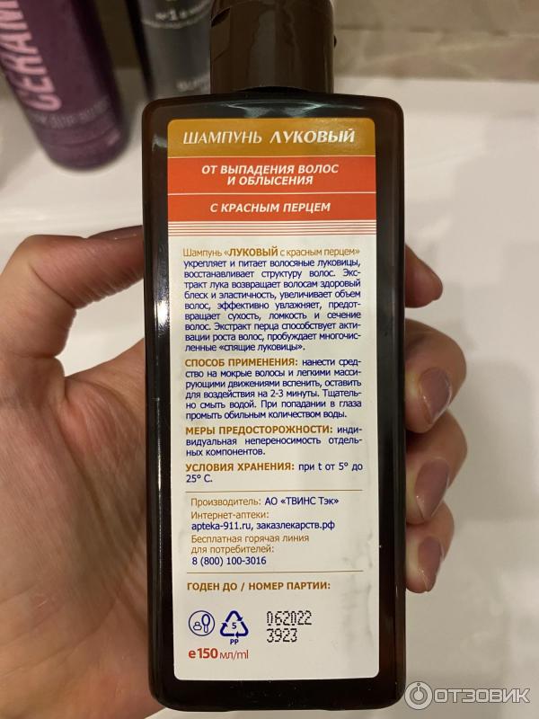 Отзывы на Шампунь «911 Луковый» с красным перцем, от выпадения волос и облысения, 150 мл