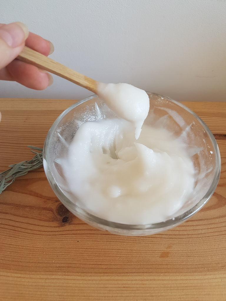 Приготовление и способ нанесения: в нежирный йогурт добавить солёный песок и бикарбонат натрия, тщательно перемешав до однородности, ввести лиственное масло. Распределять маску для волос с содой на сухих прядях прикорневой зоны, обработав всю голову, подождать до двадцати минут, по прошествии можно завершать уход за волосами.