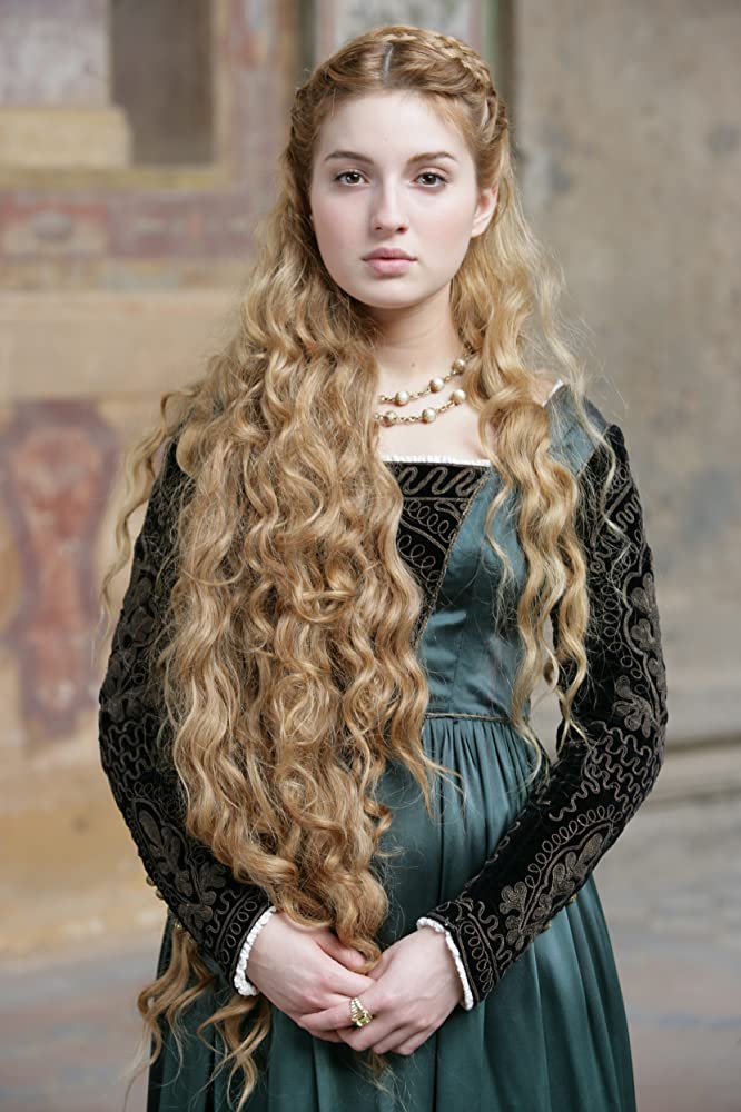 Верные канону, эти двусторонние косы-фидеры были одной из самых распространенных средневековых причесок того времени.