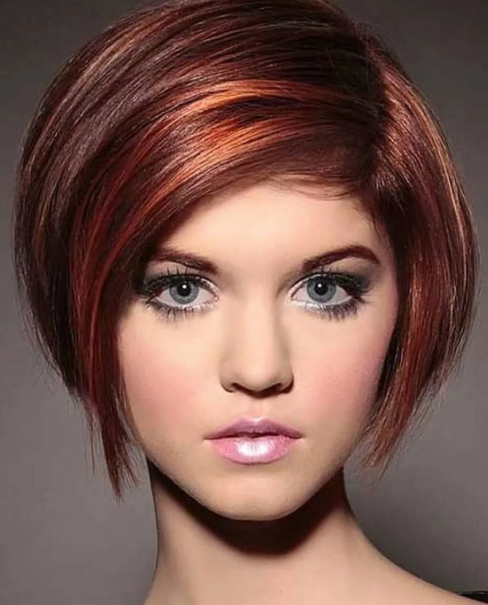 - Наличие эффектных элементов – необычной челки, угла, ножки, более длинных прядей.