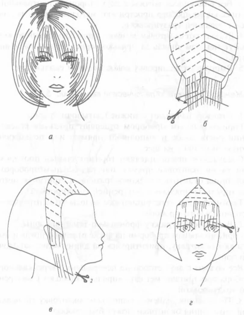 В боковых зонах линия среза диагональная — от 14 см. до 10 см.
