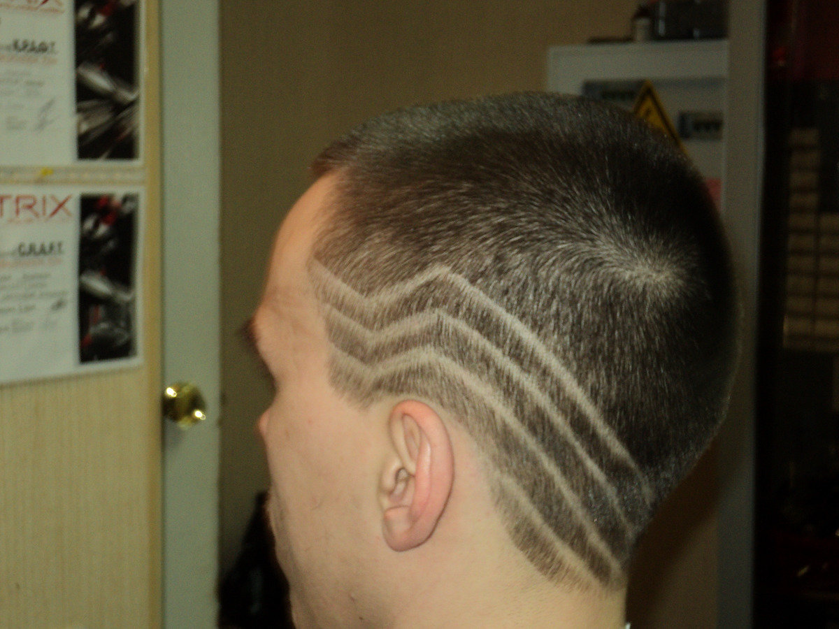 По поводу истории происхождения подобных стрижек единого мнения нет. Одни считают, что первыми начали пользоваться бритвой для формирования узоров бунтари-панки. Другие приписывают изобретение прически стилистам-парикмахерам. В любом случае такие популярные звезды как Джордж Майкл, Дэвид Бэкхем сделали выбритость невероятно востребованной. Им подражали не только молодые люди, постепенно такая деталь перестала быть шокирующей. Сегодня это очень оригинальный, эффектный элемент мужской прически.