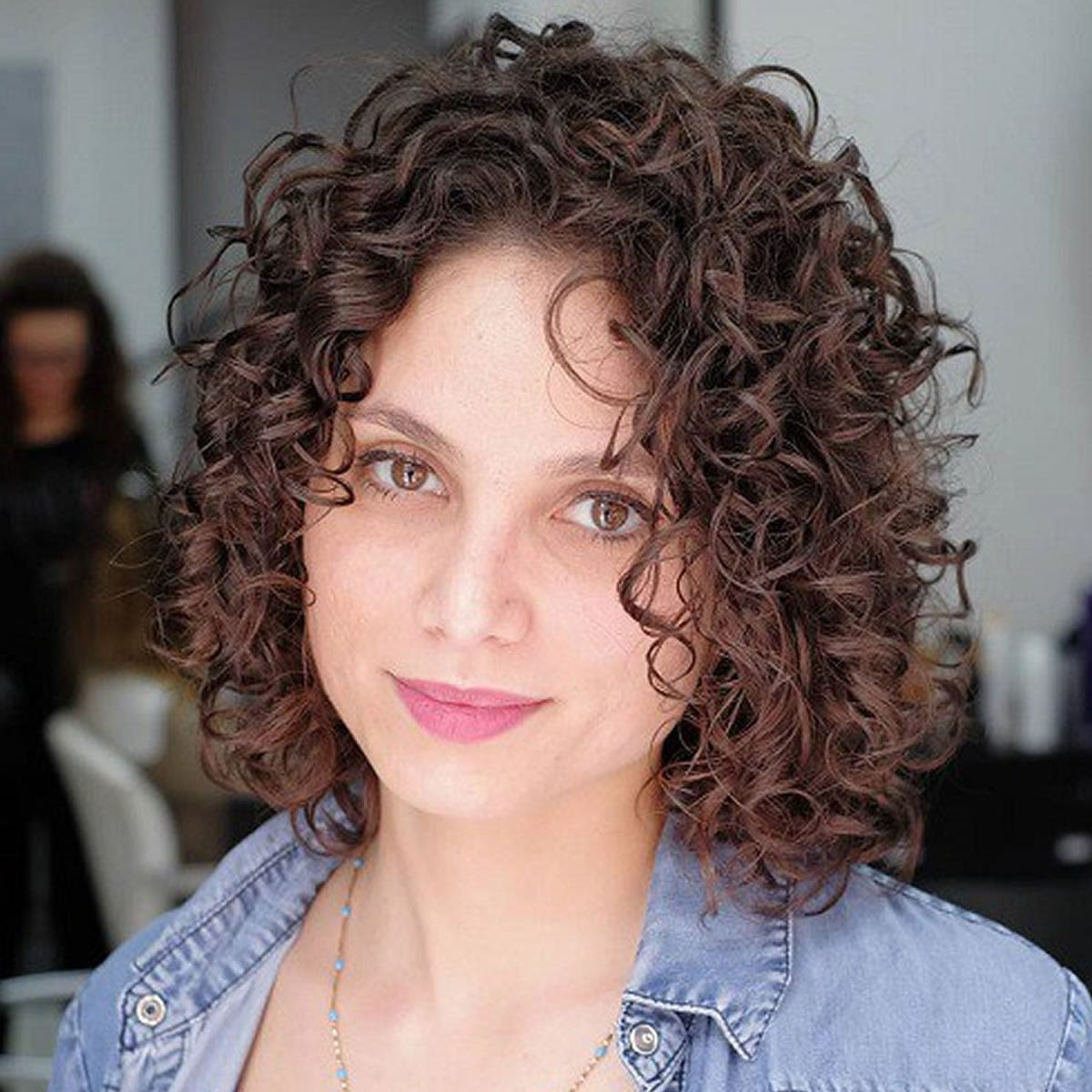 Длина волос может быть разной, но лучше отказаться от каре. С помощью кудряшек создается дополнительный объем, который легко укладывается.