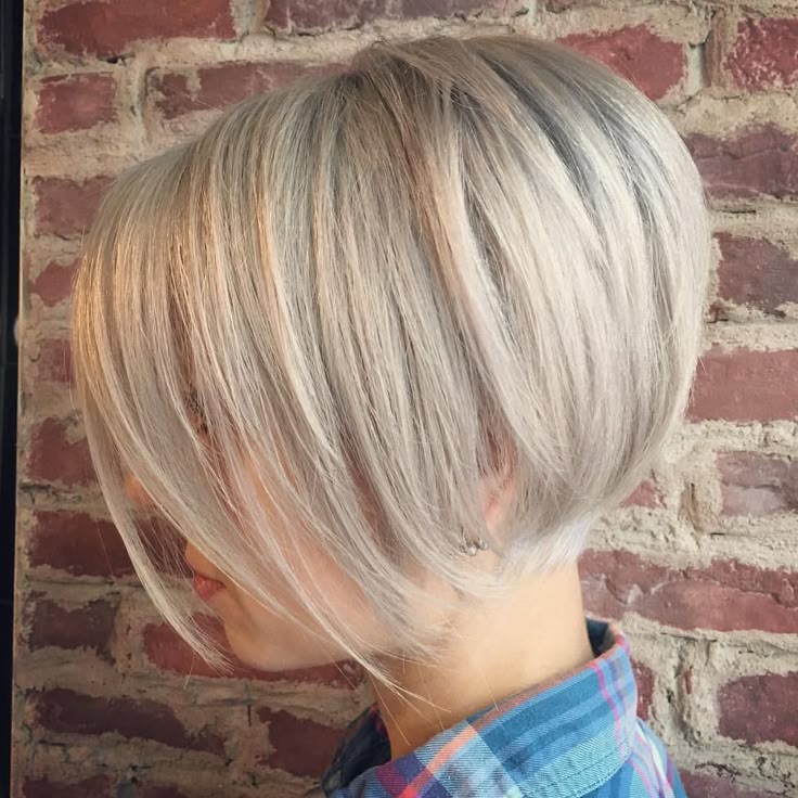 Стрижка боб, очень многослойная по всей длине, отлично подходит для того, чтобы вы выглядели более острыми, свежими и моложе, потому что добавляет геометрии лицу. Кроме того, это также здорово, если вы хотите отрастить свои великолепные короткие седые волосы.
