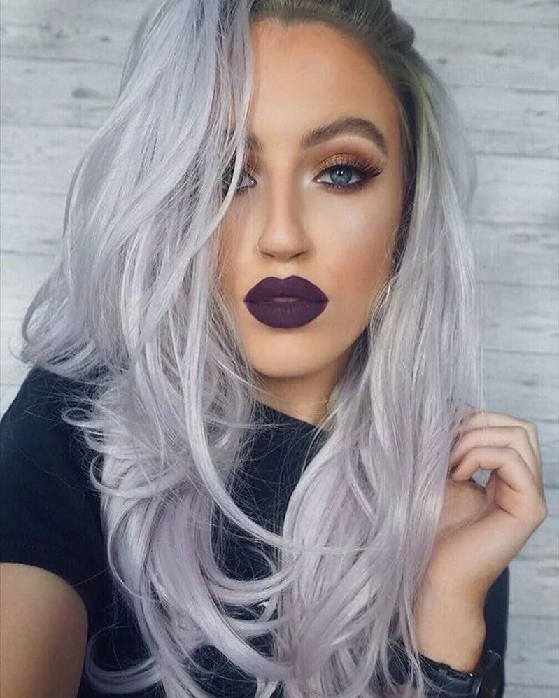 Фиолетовый оттенок, присутствующий в классическом пепельном цвете, сделает образ интересным, красочным и молодежным. Его часто выбирают нестандартные натуры, которые не боятся внимания со стороны. Фиолетово-серый оттенок гармонирует с как темными, так и со светлыми глазами. Исходный цвет шевелюры в этом случае также может быть любым.