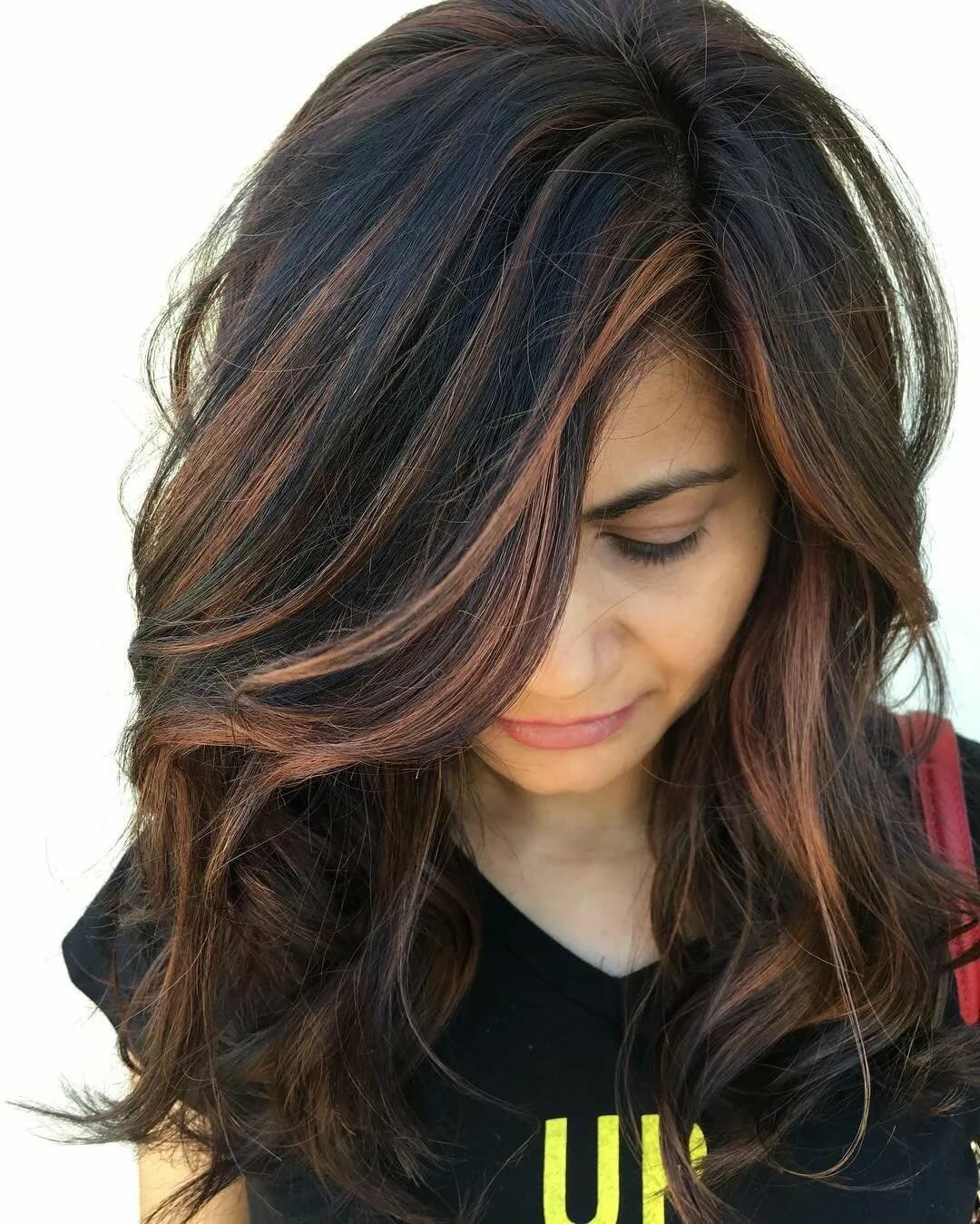 Популярное в текущем году калифорнийское и американское окрашивание отдельных прядей на темные волосы, часто можно увидеть на фото знаменитостей и в реальной жизни на многих молодых девушках. Темные локоны локоны хорошая основа для выкрашивания в разные тона, и поэтому часто встречаемая среди модниц всего мира. Именно поэтому многие парикмахеры предлагают несколько известных способов для преображения. Современные технологии и предложенные методы способны воплотить любые фантазии.