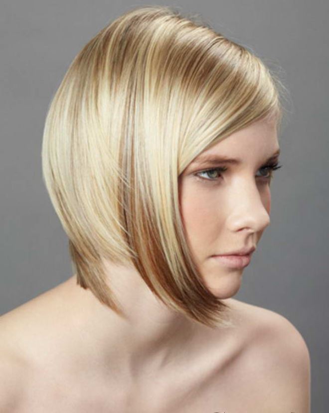 - боб А-формы, с длинными прядями у лица и короткой макушкой – идеальная стрижка для круглого лица и для прямоугольного лица.