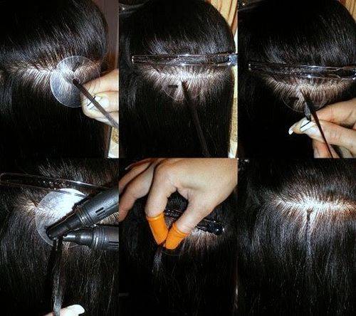 - Данная процедура подразумевает присоединения капсулы с искусственными волосами к области корней натуральных прядей.