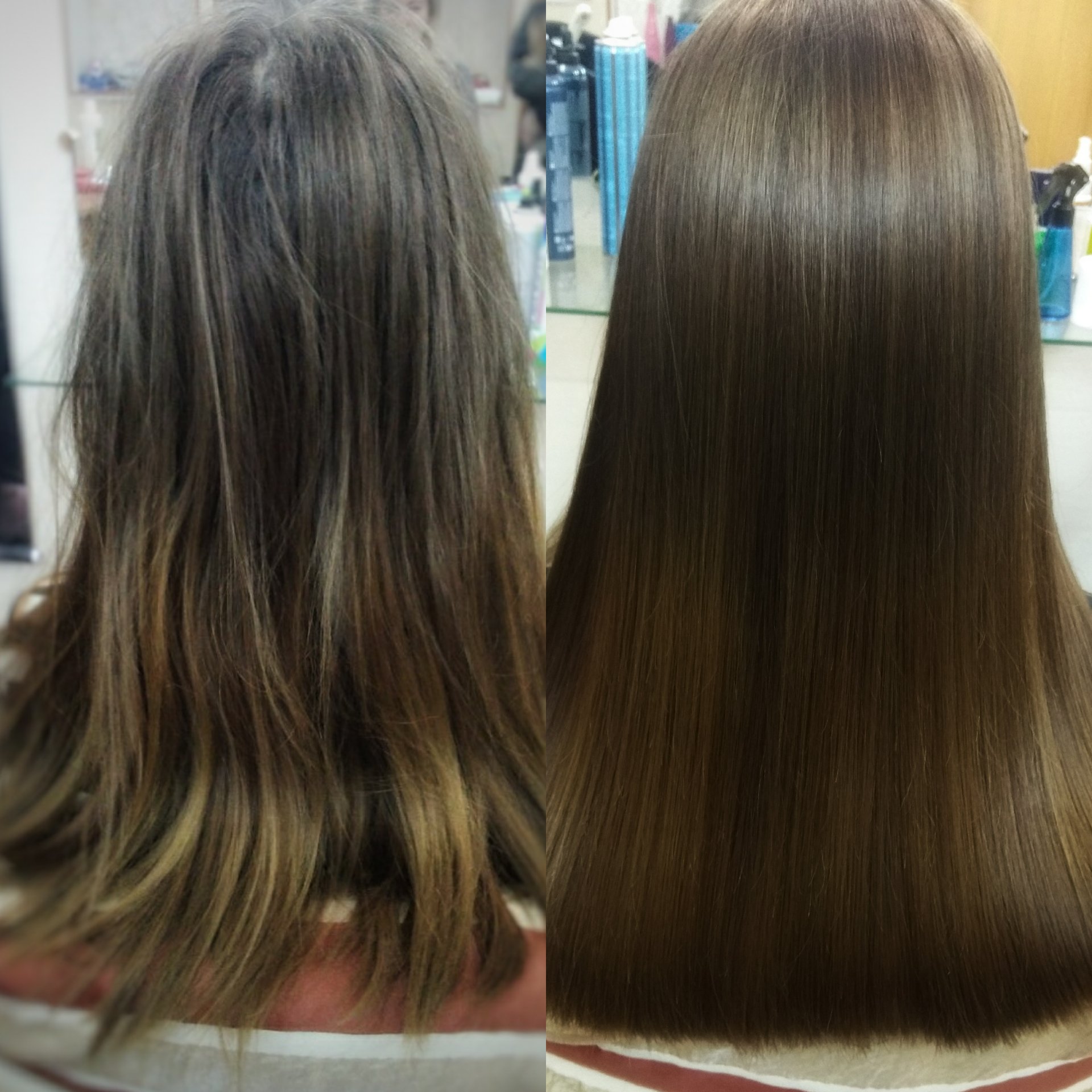 После чего голову моют, высушивают феном и ВОТ ОН результат! Прямые и блестящие волосы, которые приятно трогать!