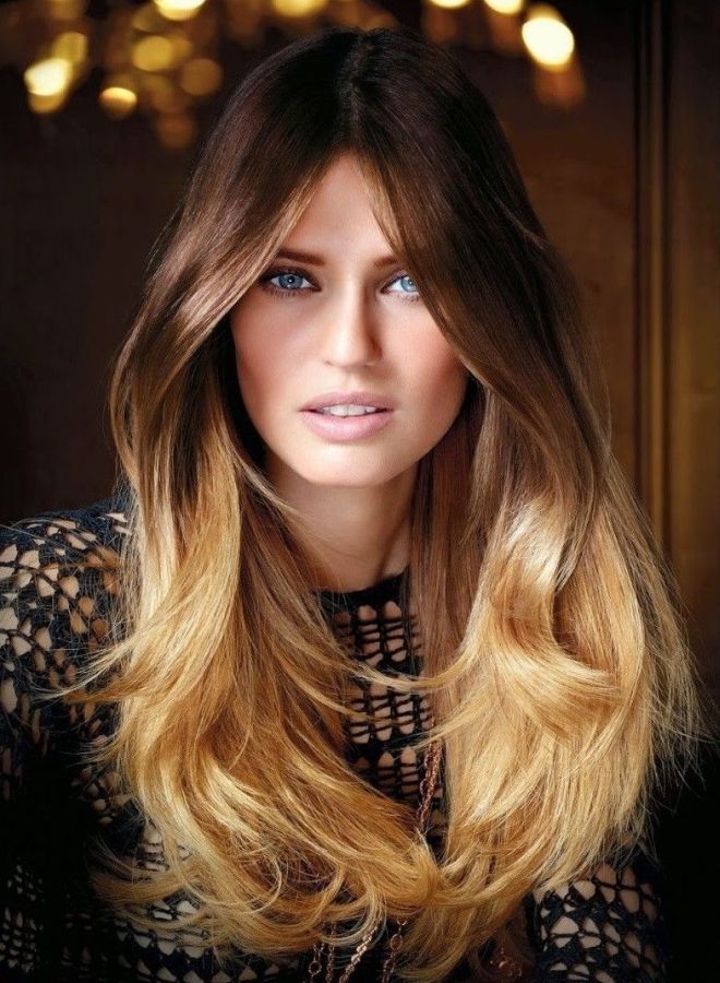 6. Омбре на длинные волосы. Загорелый вид заставит вас почувствовать себя калифорнийской малышкой, даже если вы на самом деле находитесь в угрюмом Орегоне. Попробуйте поиграть с оттенками блонда и карамели; стиль отлично подходит для тех, кто ищет омбре для брюнетки.