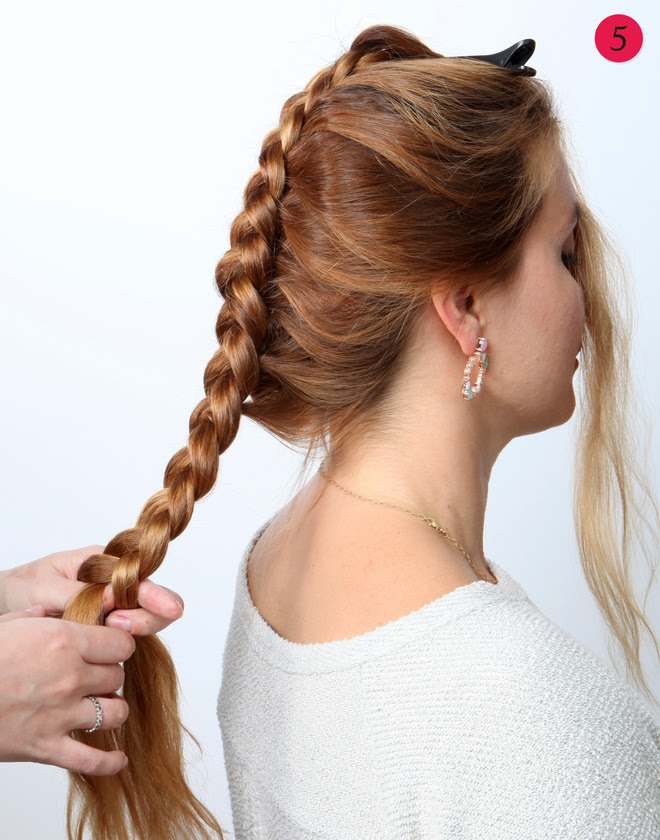 - левую прядь перенесите в центр, правую, затем – опять левую и опять правую;