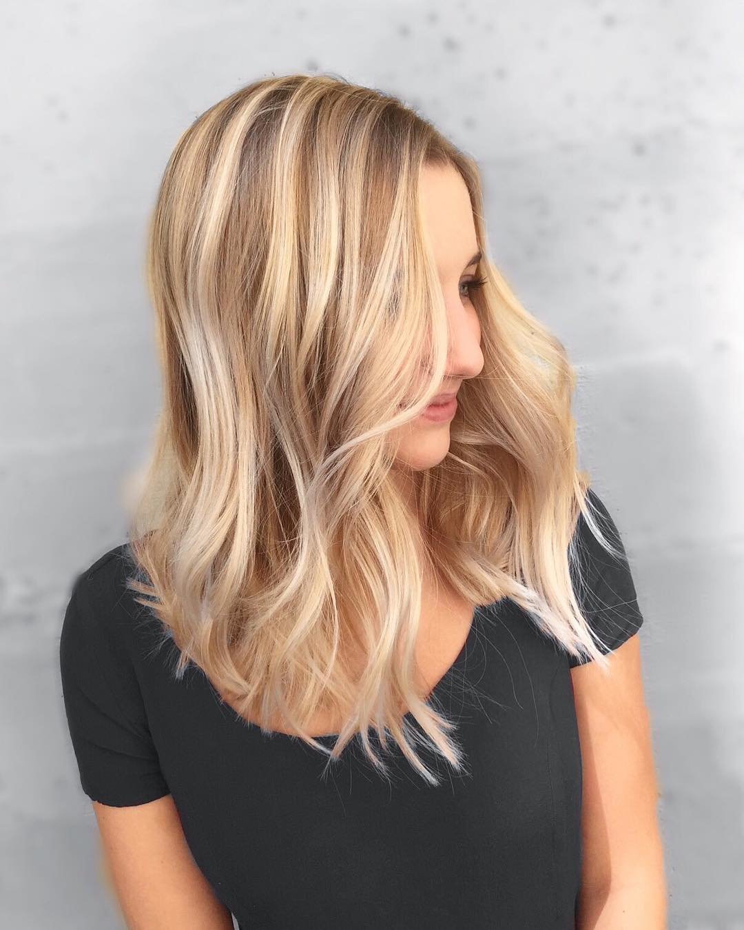 Этот вид окрашивания придает локонам визуальную пышность и густоту. За счет тщательного выбора оттенков создается эффект солнечных бликов в волосах, пряди блестят, имеют ухоженный вид. Идеальный вариант для тех, кто желает постепенно стать блондинкой, не навредив своим локонам.