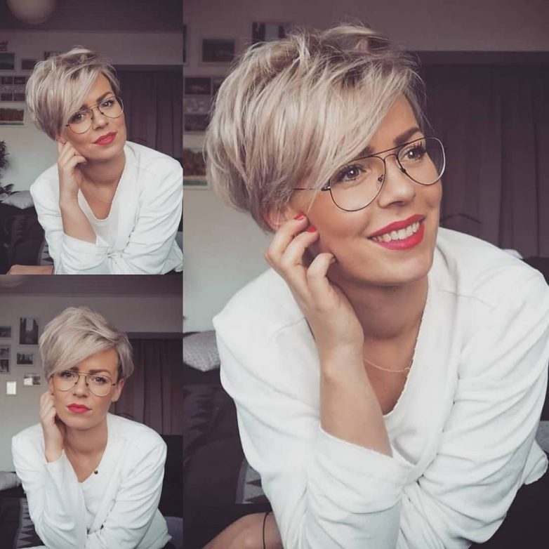21. Растрепанная короткая стрижка для тех, кому за 50, с очками