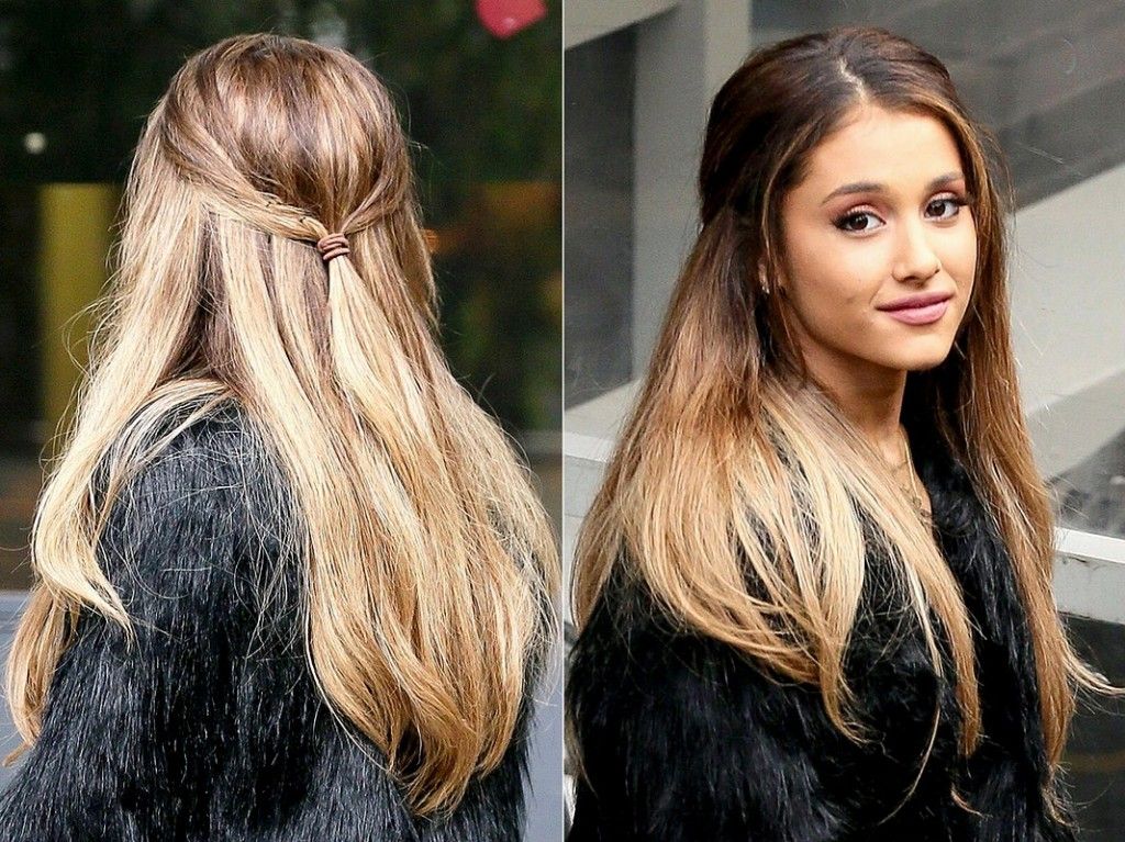 #27: Элегантная прическа с полураспущенными волосами для прямых волос