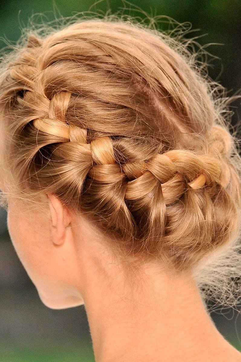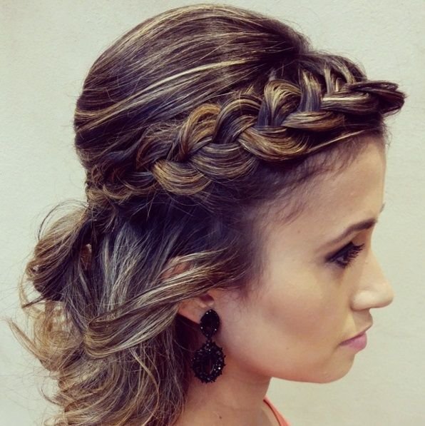 Модных причесок с косой наверху достаточно много, самые известные – греческая коса и коса-корона. Это отличные варианты для вечера.