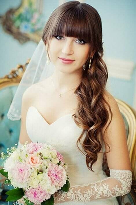 Модные свадебные прически с челкой до половины