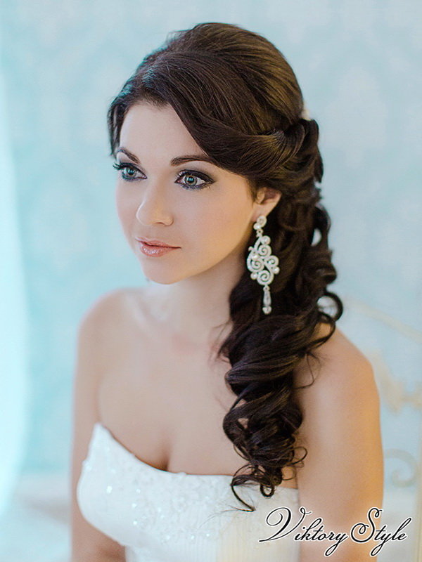 Длинные волосы – это богатство любой девушки, которое дает широкий простор для различных видов укладки. Распущенные волосы с завитыми локонами или прямые придадут образу романтичности и нежности. Они идеально дополнят свадебное платье с открытыми плечами. Элегантность и нежность невесты подчеркнут волосы, собранные в хвост либо красивый пучок.